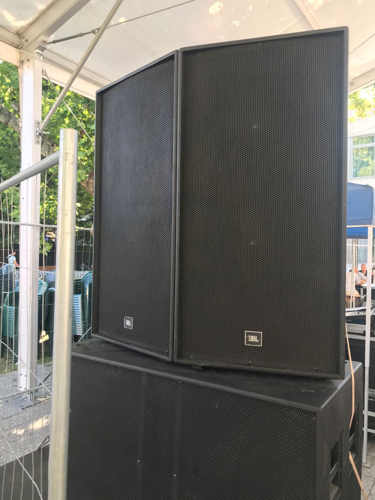 2 szett JBL SR-X system 4 top (4 x 1200W Hangfalak, végfokok, vezérlő, áram és jelkábel szett, együtt: