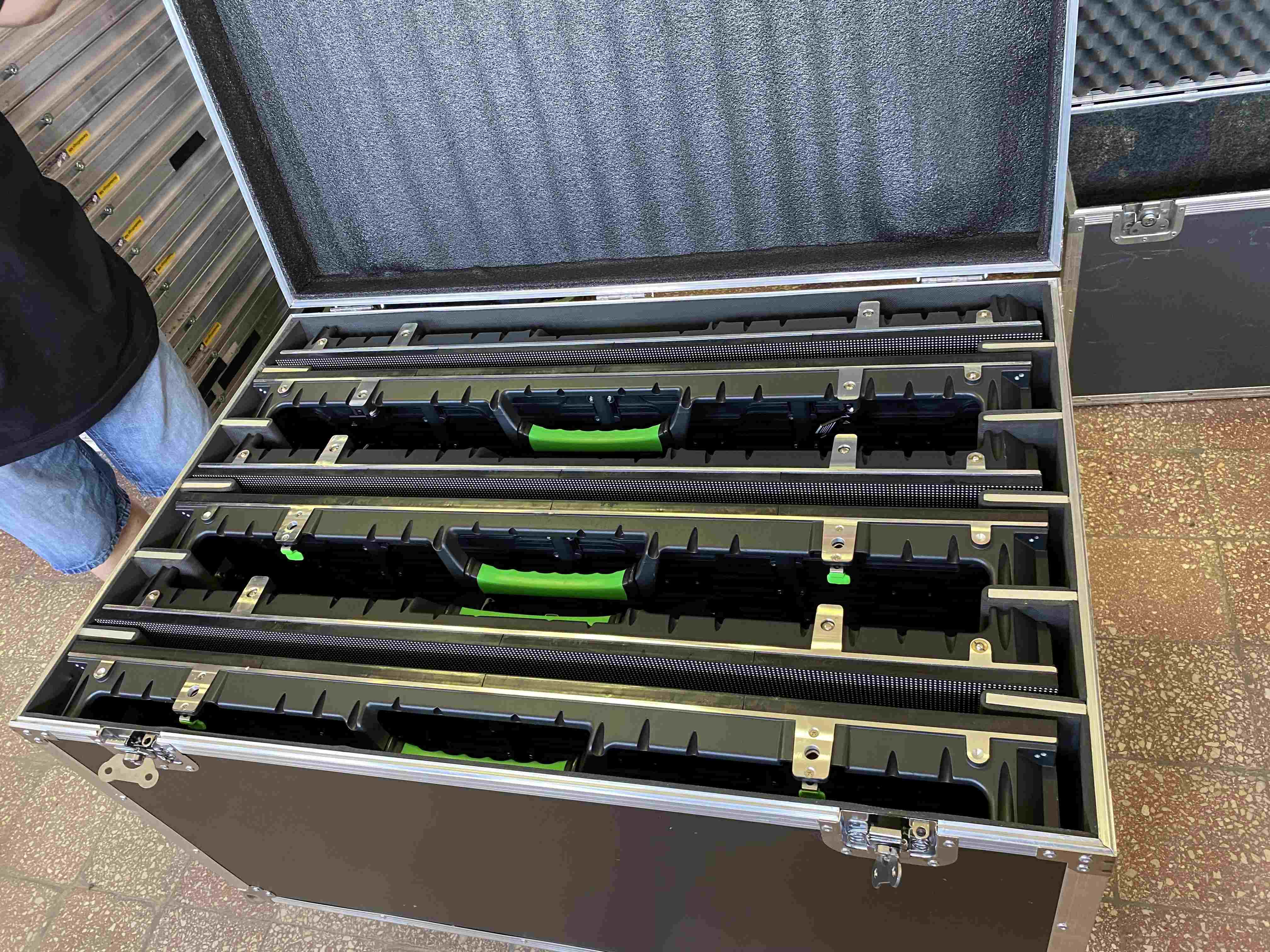 Eladó, újszerű led kijelző 24m2, P4 (3.91) 48 db 100 x 50 cm-es panel, 6in1 konténerben, jel és hálózati kábelekkel, 8 db 1m-es, 2 db 0.5m-res rigg elemmel. Novastar VX400 vezérlés. Tartalék panel és tápegységek, szerviz csomag. Raktárról azonnal szállítható, munkára készen.